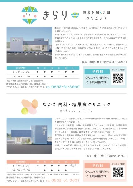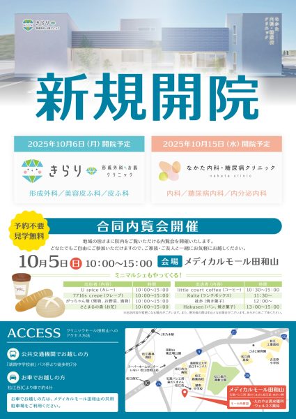 このたび弊社が施工を担当いたしました「きらり形成外科・お肌クリニック」様「なかた内科糖尿病クリニック」様が、2院合同で内覧会を開催されます。